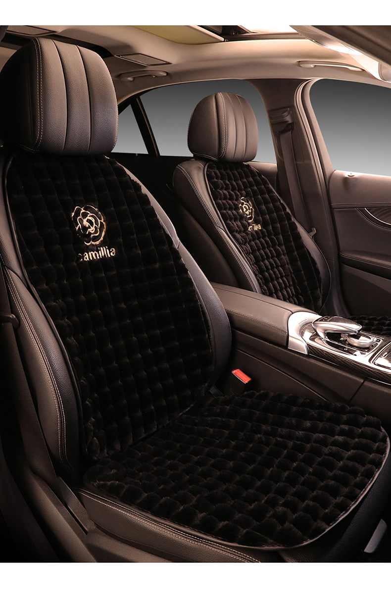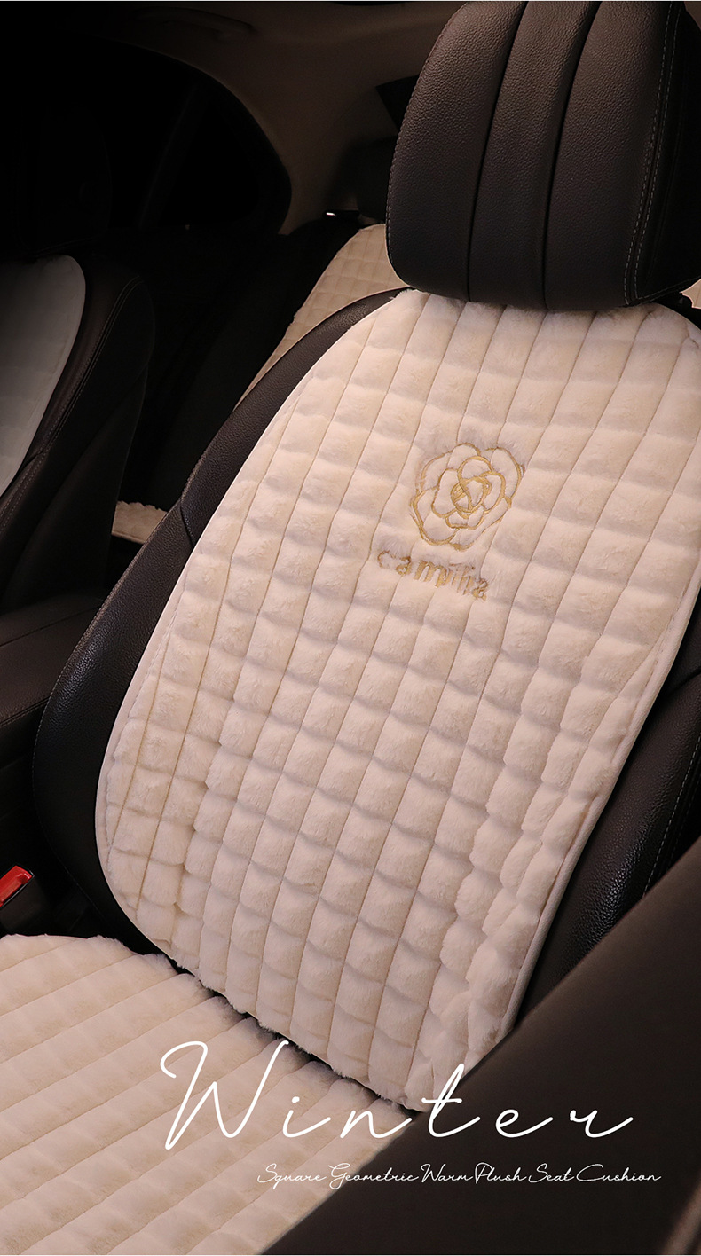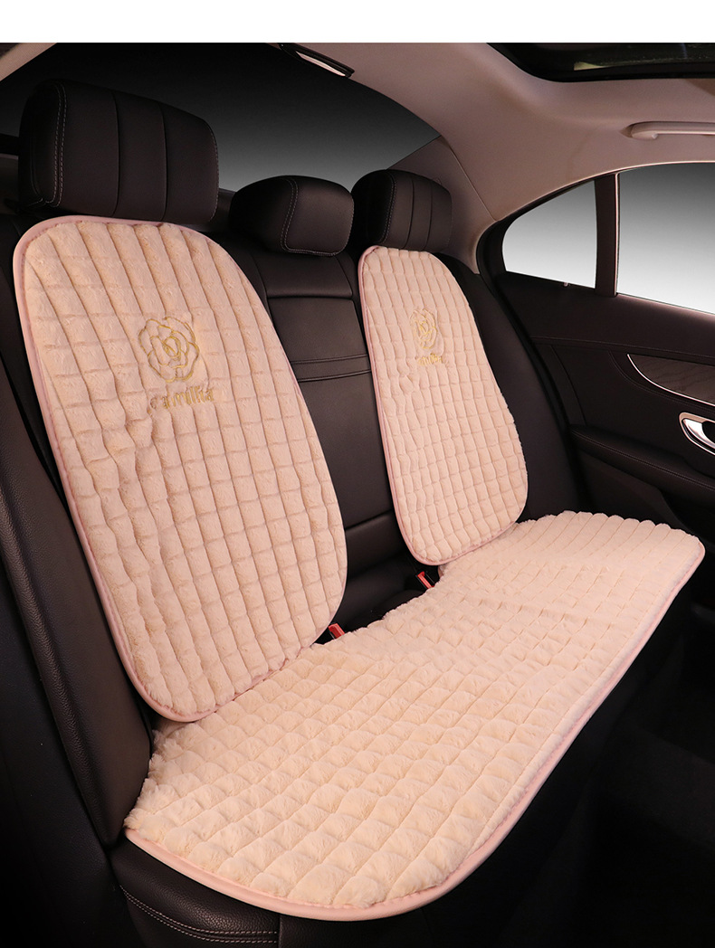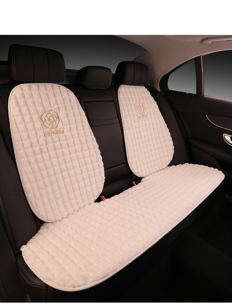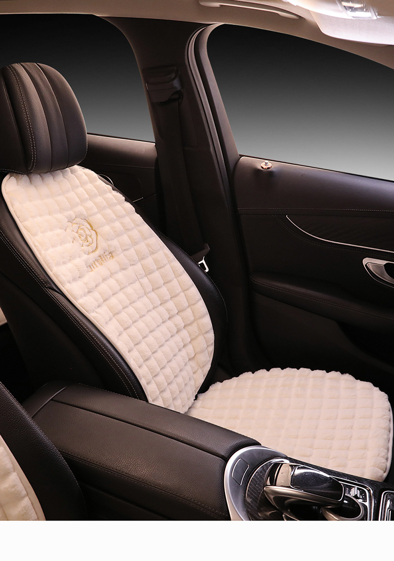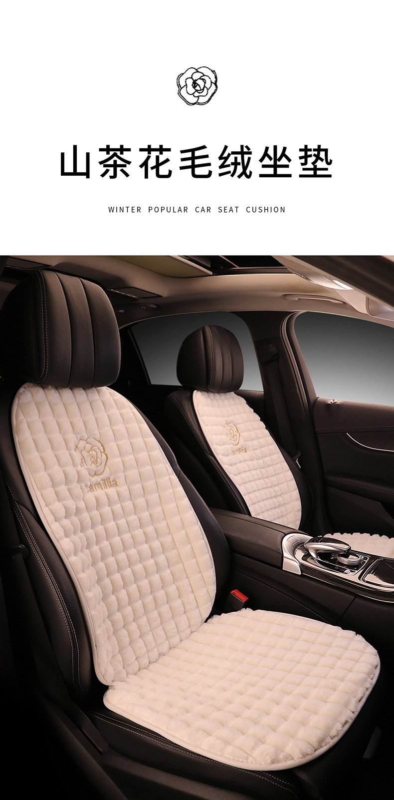 山茶花轻奢极简风网红毛绒汽车坐垫秋冬季舒适保暖加厚座垫三件套