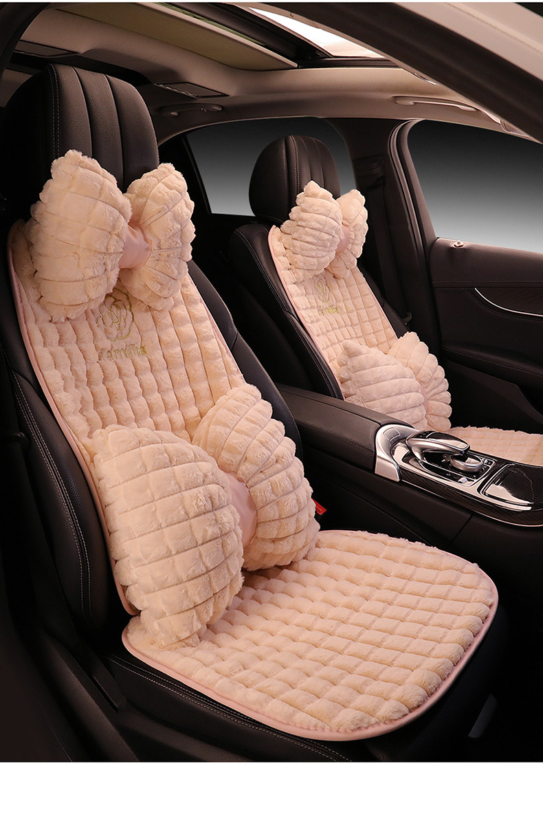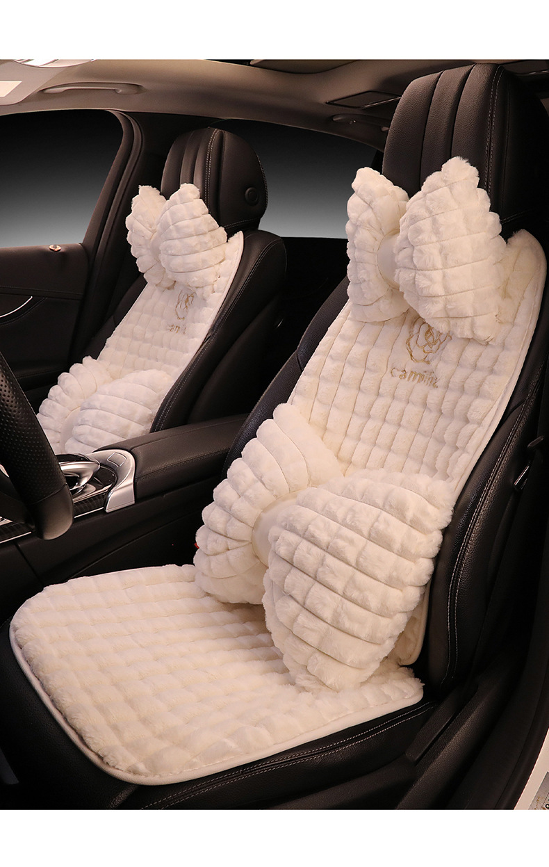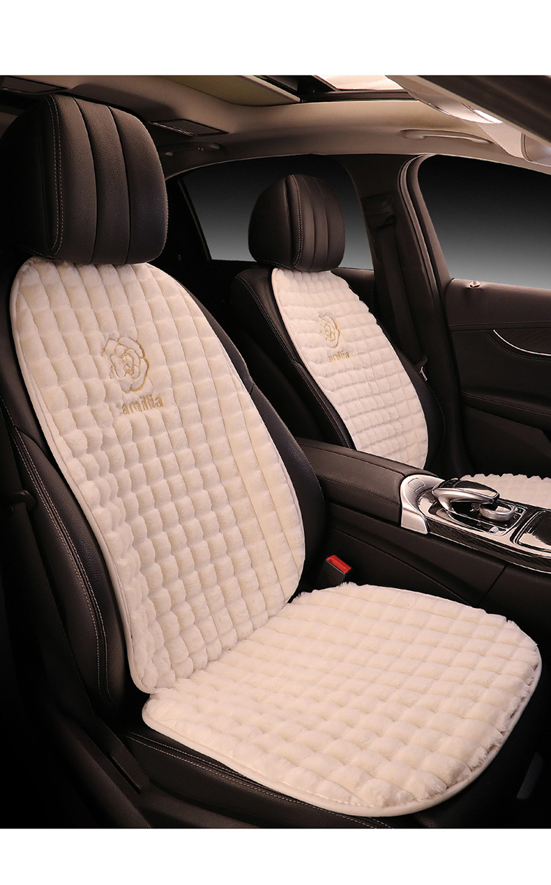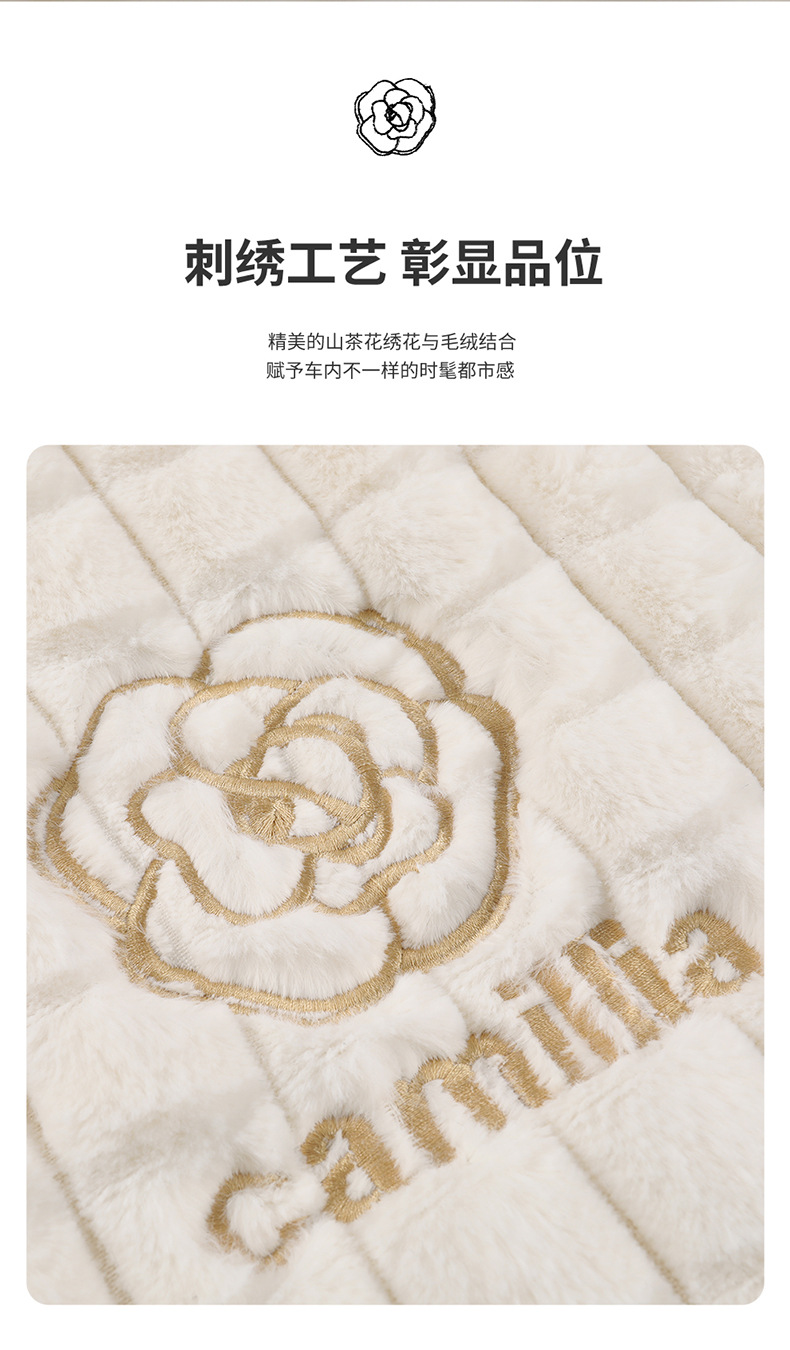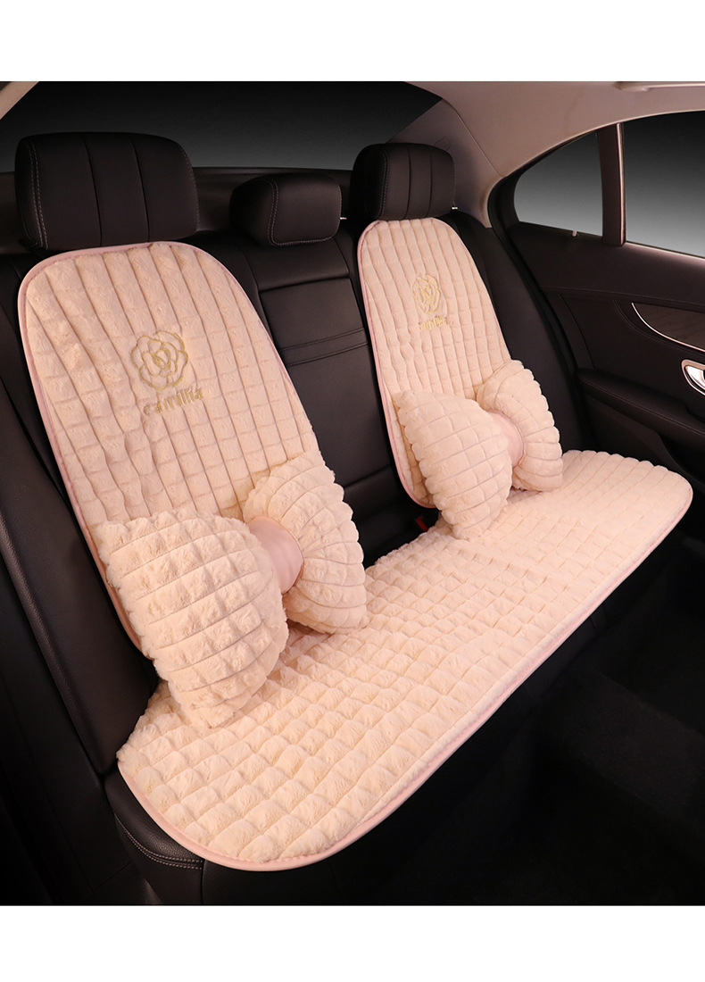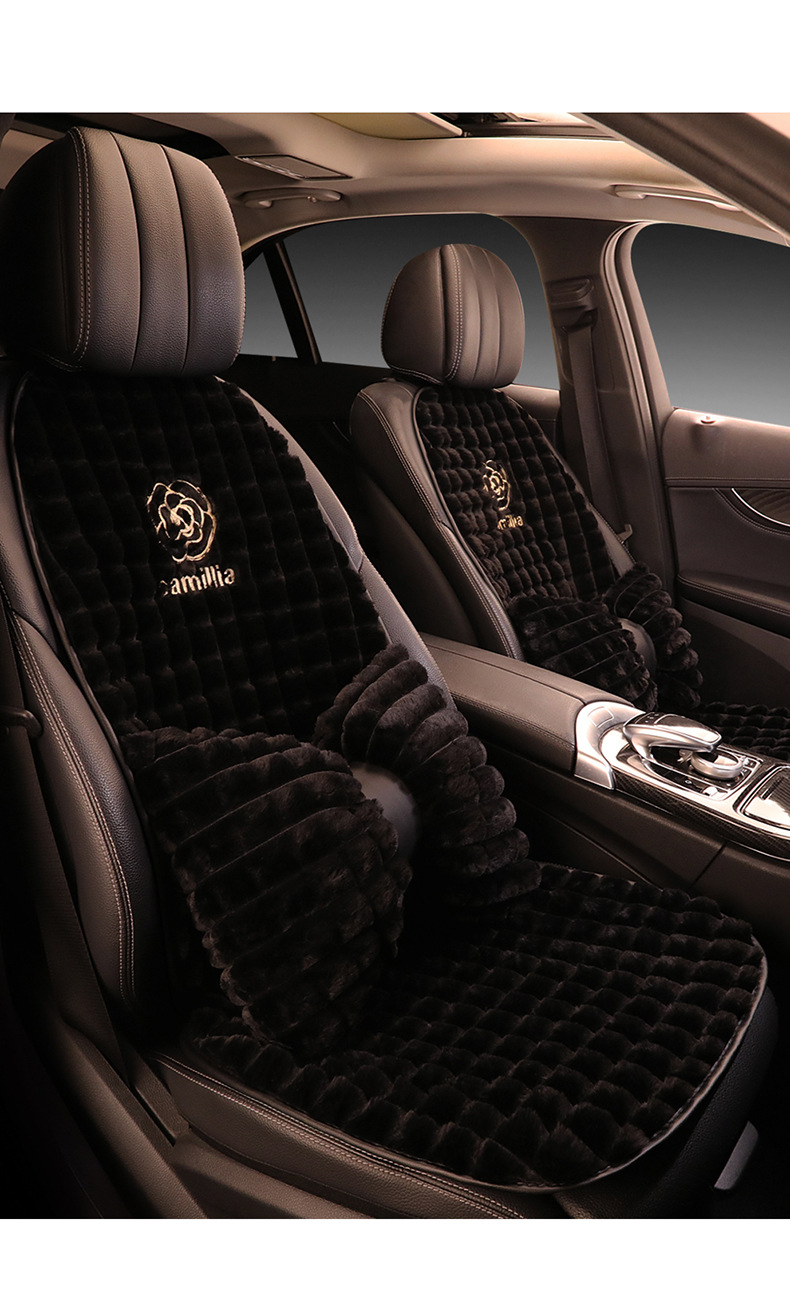 山茶花轻奢极简风网红毛绒汽车坐垫秋冬季舒适保暖加厚座垫三件套