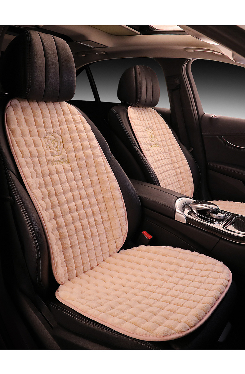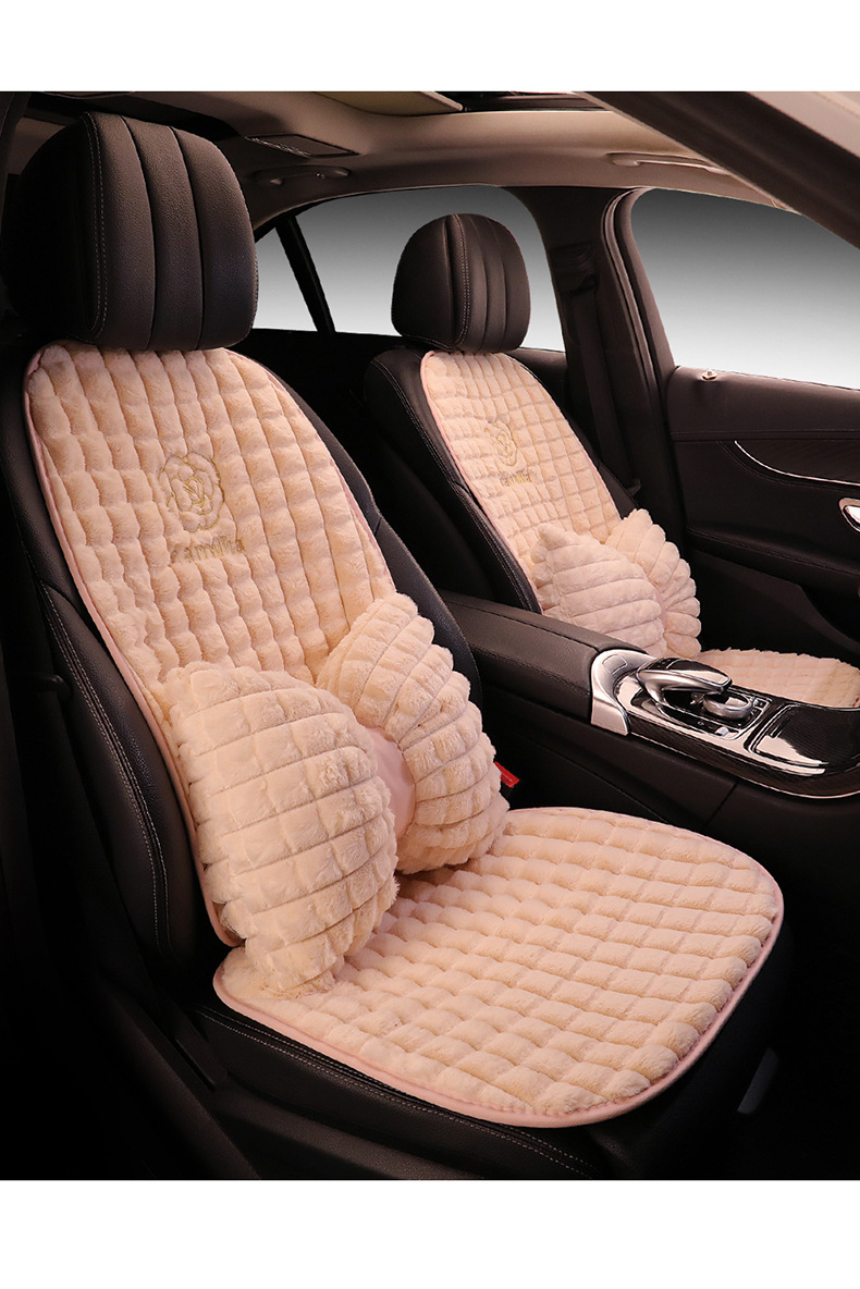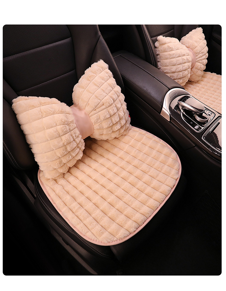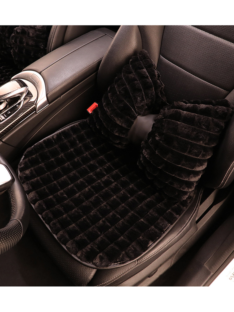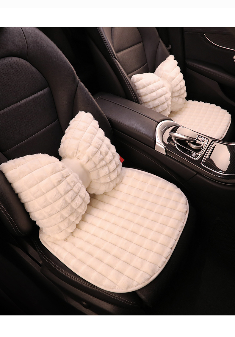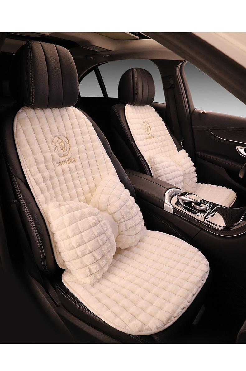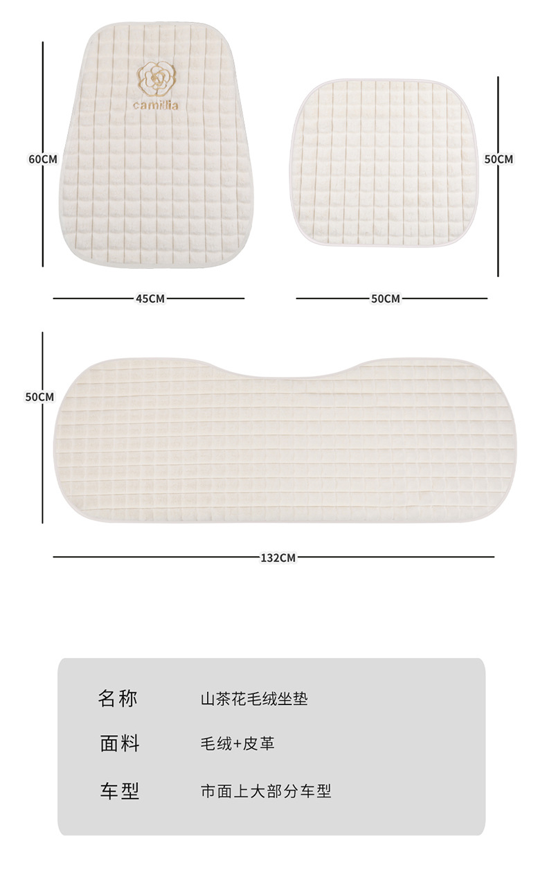 山茶花轻奢极简风网红毛绒汽车坐垫秋冬季舒适保暖加厚座垫三件套